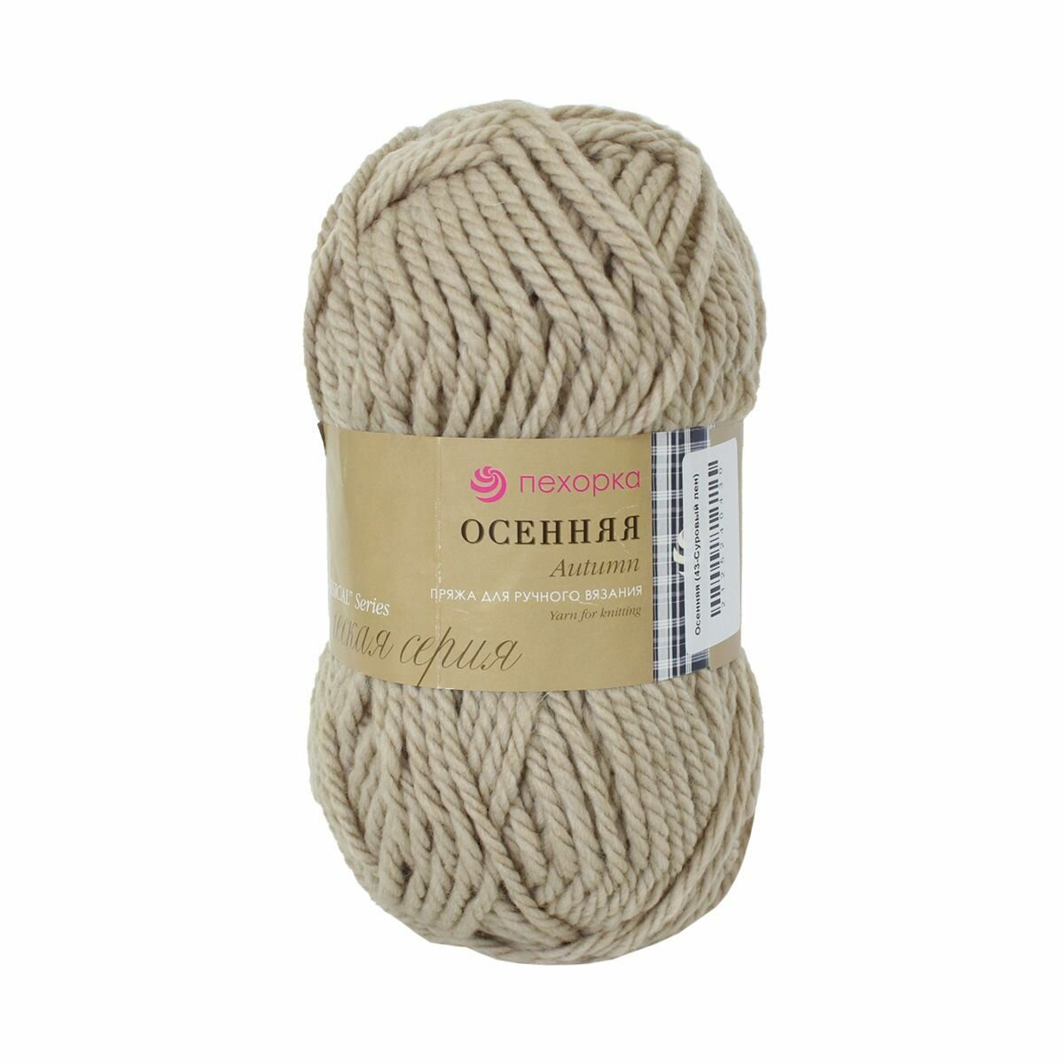 Пряжа для вязания Пехорка 'Осенняя' 200г, 150м (25% шерсть, 75% акрил) (43 суровый лен), 5 мотков