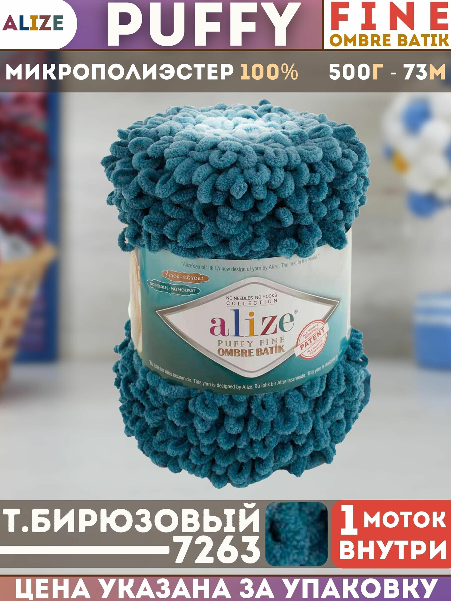 10 цен на Пряжа для вязания Alize Puffy Fine Ombre Batik 7263, 500 г, 73 м, 1 штука