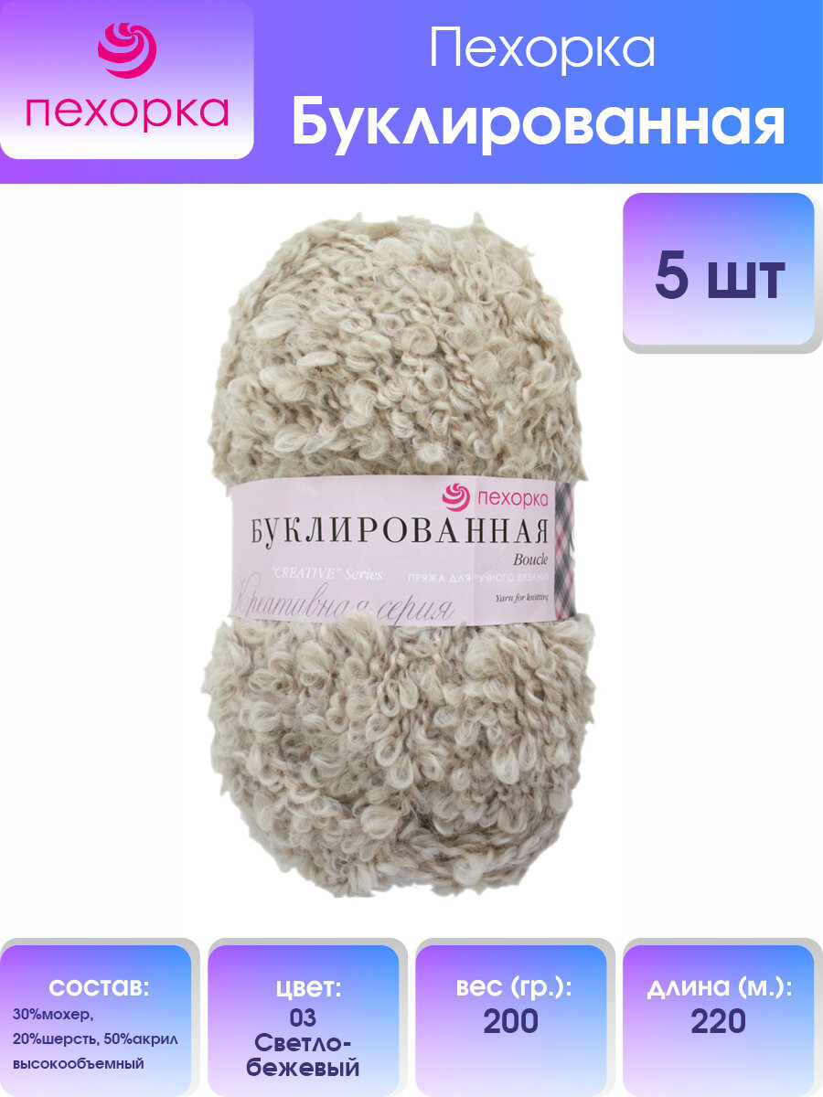 Пряжа для вязания Пехорка "Буклированная" букле, 5 шт, Светлобежевый №03