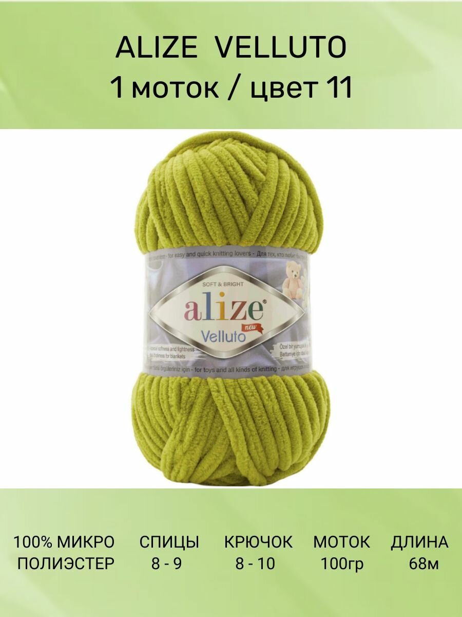 Пряжа Alize Velluto фисташка (11), 100%микрополиэстер, 68м, 100г, 1шт информация: