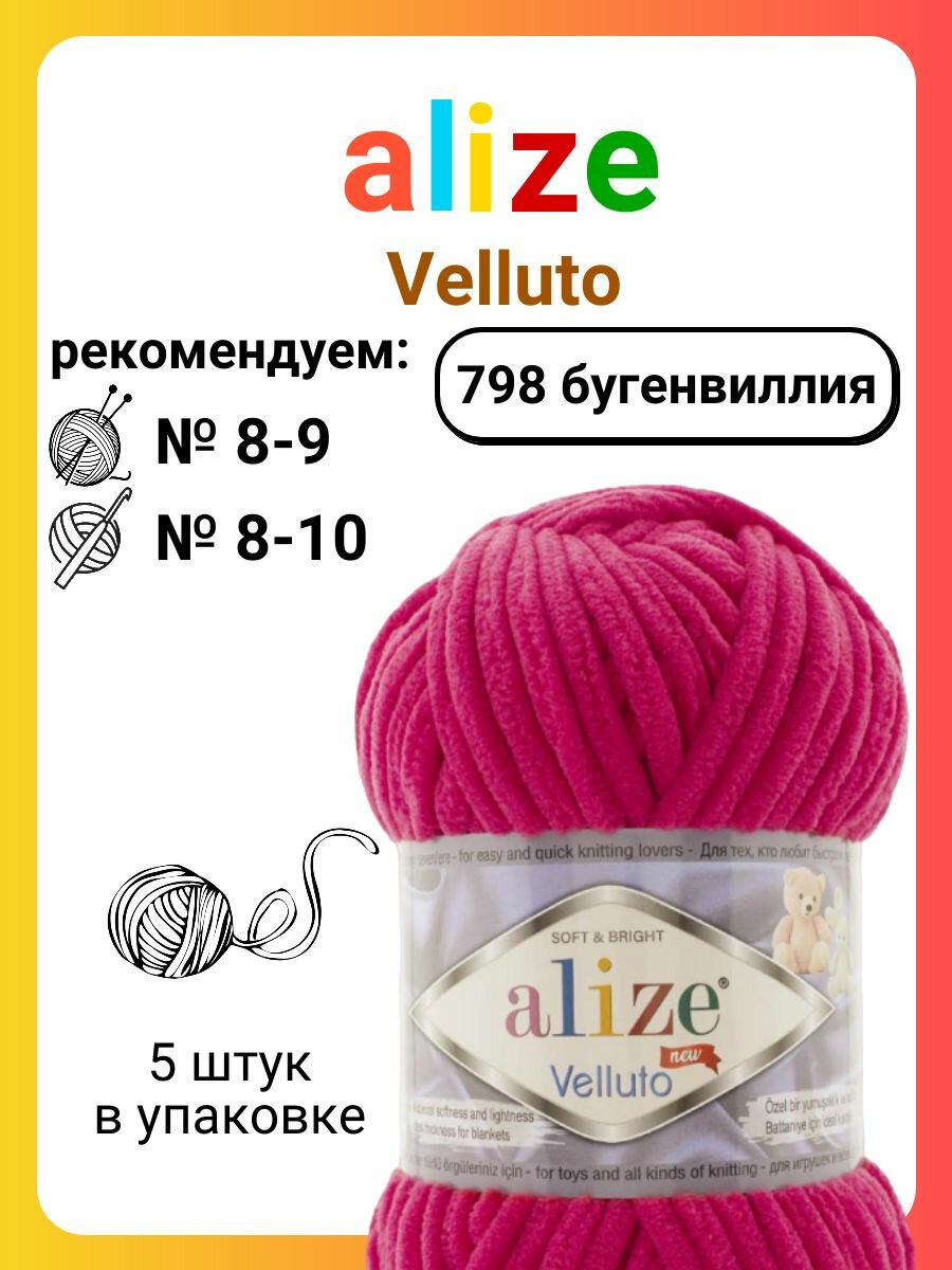 Пряжа VELLUTO (Alize), яр. мальва - 798, 100% микрополиэстер, 5 мотков, 100 г, 68 м. 1 402 ₽