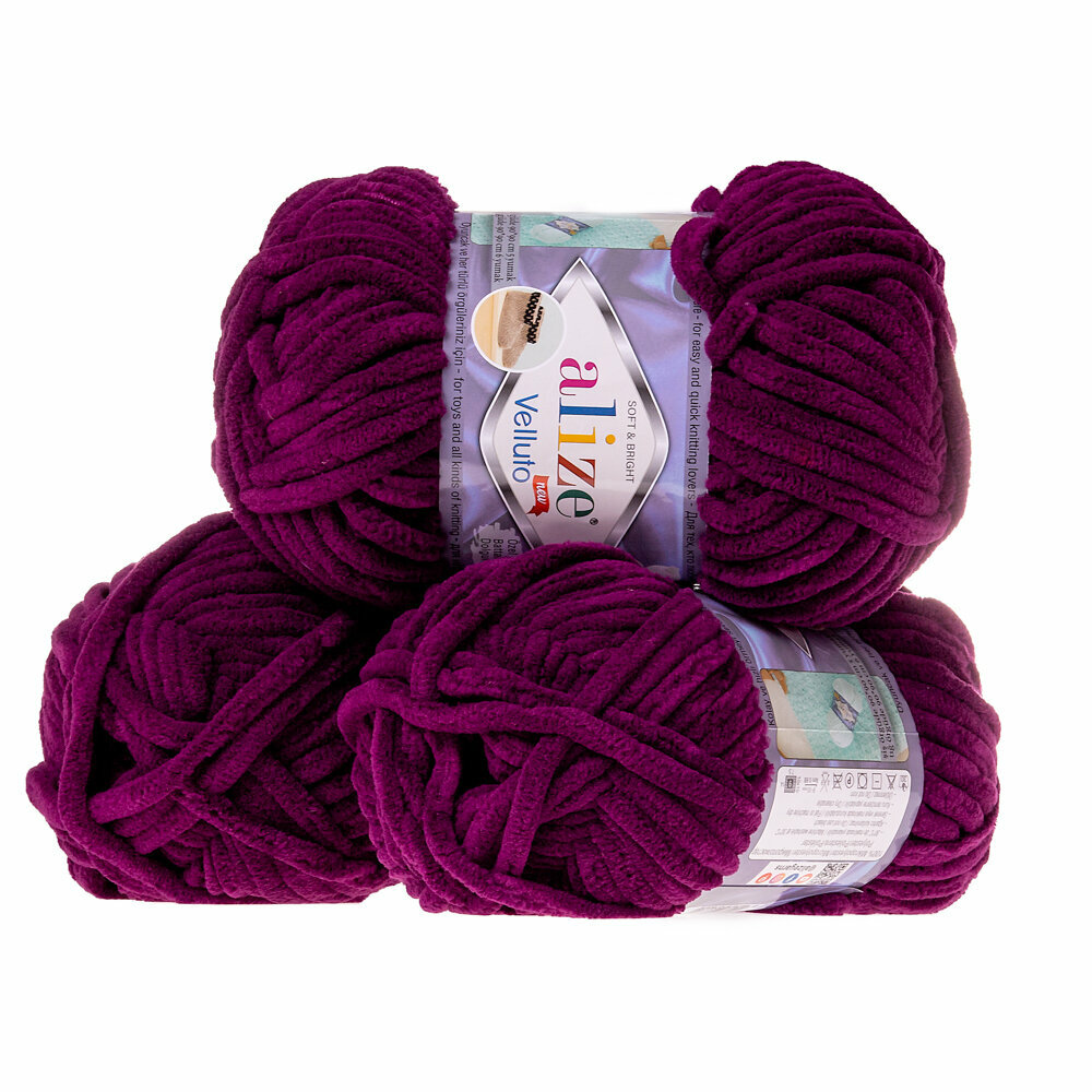 Пряжа VELLUTO (Alize), фиолетовый - 44, 100% микрополиэстер, 5 мотков, 100 г, 68 м.