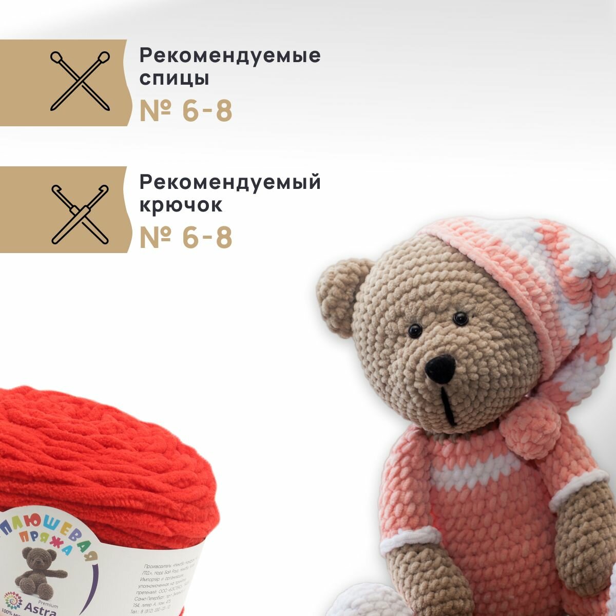 Пряжа для вязания Astra Premium 'Плюшевая', 100г, 80м (100% микрополиэстер) (152 красный), 2 мотка информация: