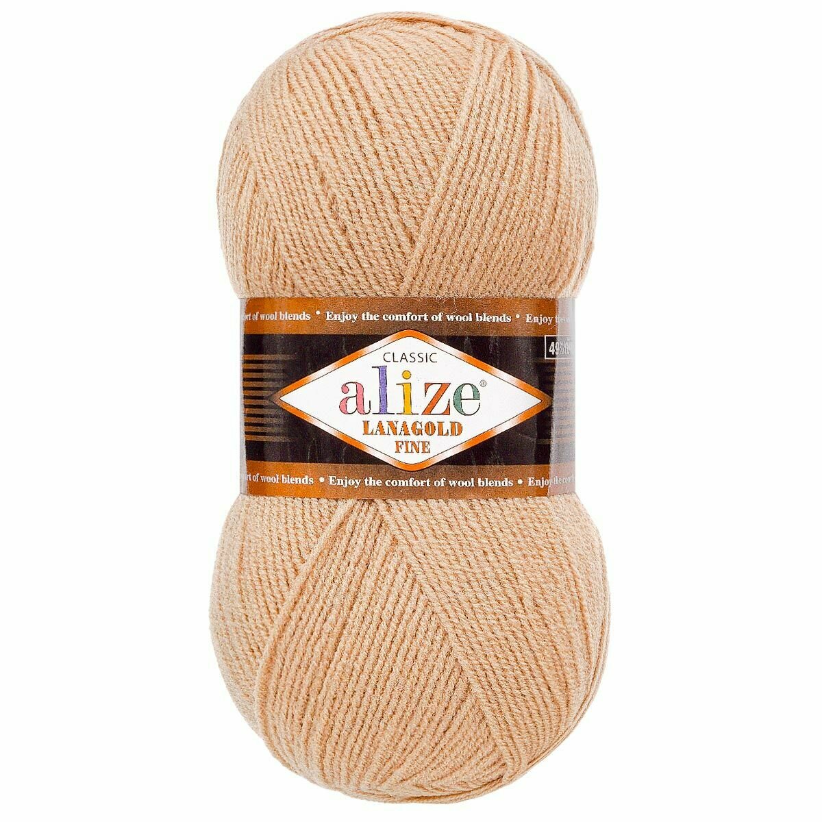 Пряжа Alize Lanagold Fine (Ализе Ланаголд Файн) - 1 моток, 05 бежевый, 49% шерсть, 51% акрил 390м/100г