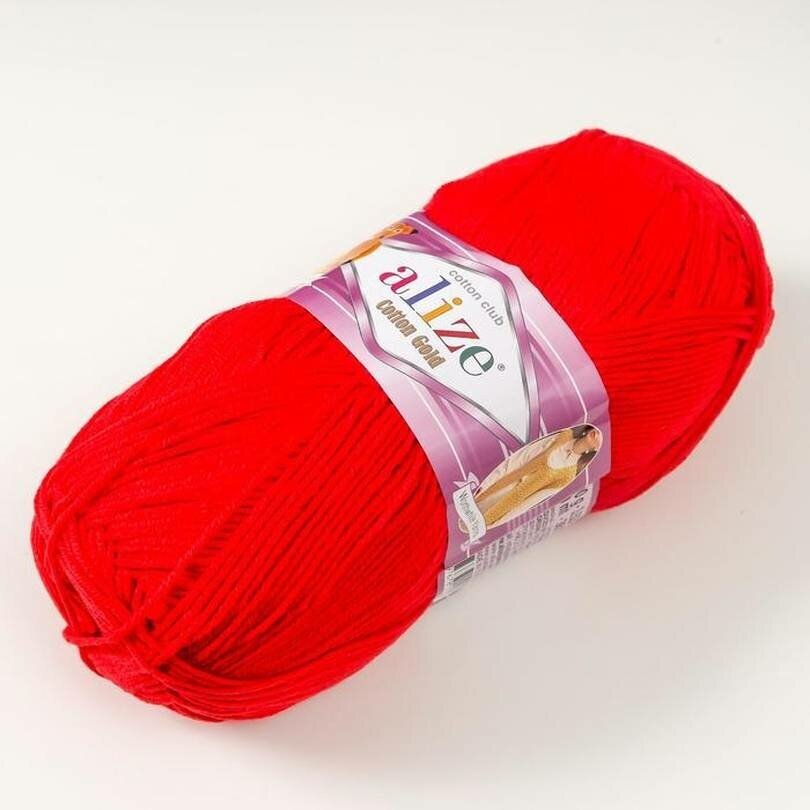 Пряжа для вязания ALIZE 'Cotton gold', 100г, 330м (55% хлопок, 45% акрил), ТУ (56 красный), 5 мотков