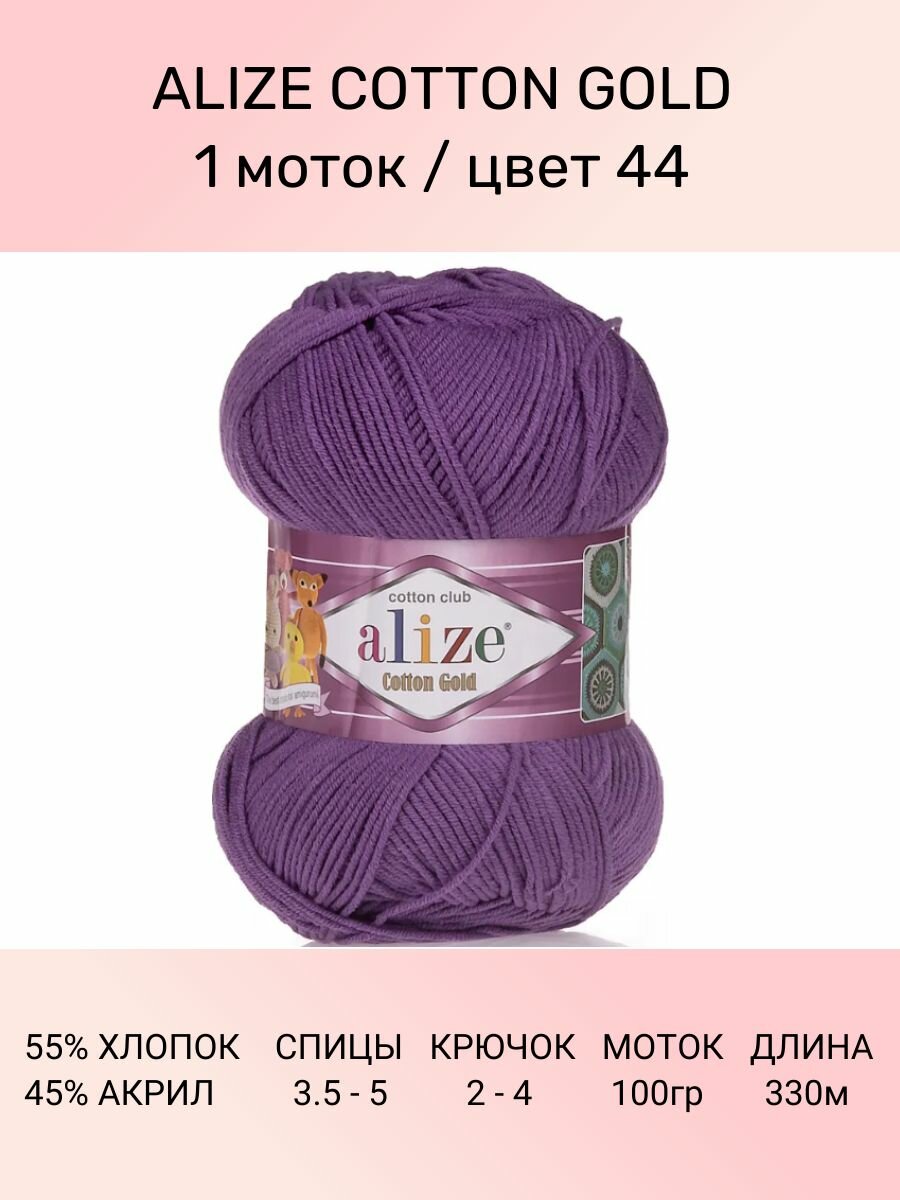 10 цен на Пряжа Alize Cotton Gold темно фиолетовый (44), 55%хлопок/45%акрил, 330м, 100г, 1шт