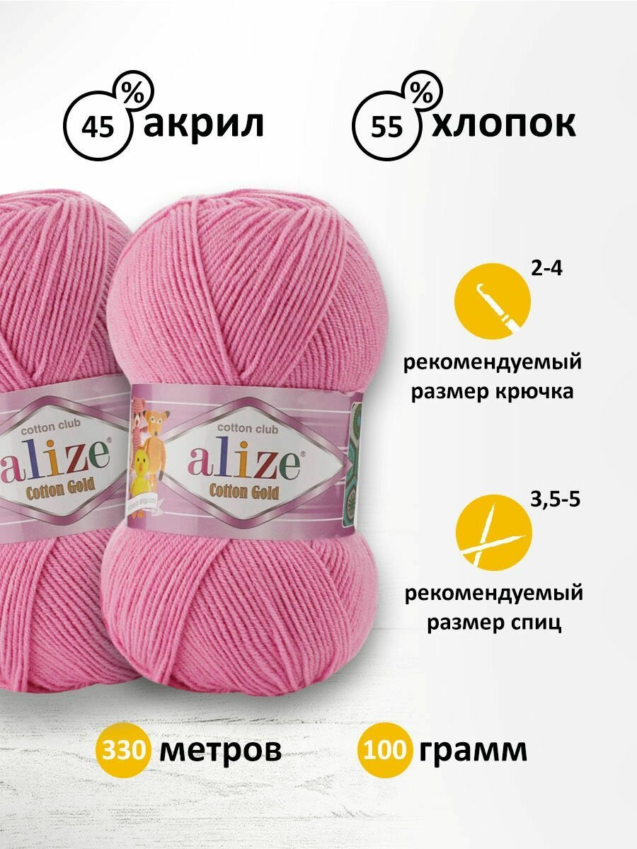 Пряжа для вязания ALIZE 'Cotton gold', 100г, 330м (55% хлопок, 45% акрил), ТУ (98 розовый), 5 мотков 1 462 ₽
