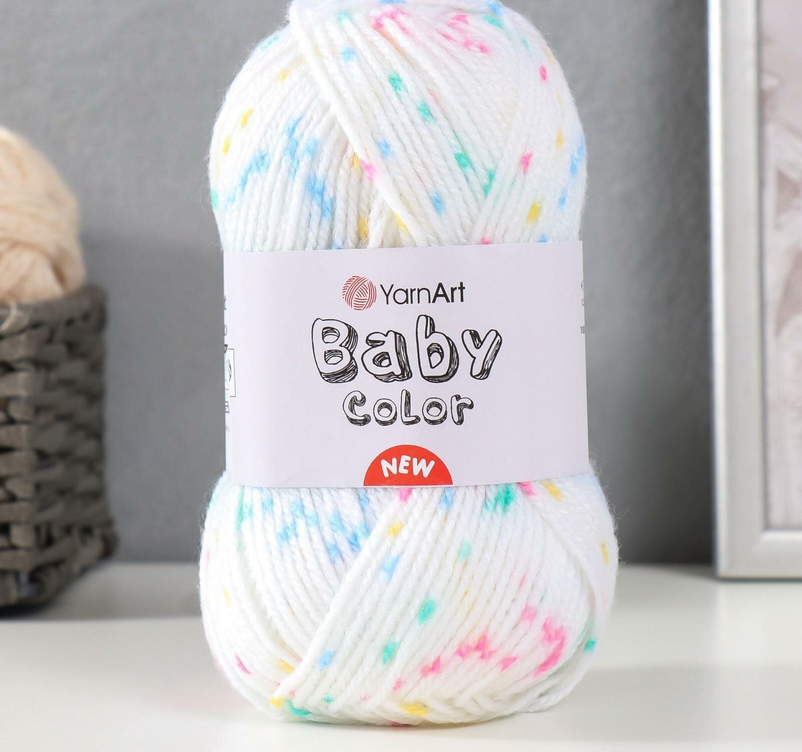 Пряжа Yarnart Baby Color белый-разноцветная крапинка (214/267), 100%акрил, 150м, 50г, 1шт информация: