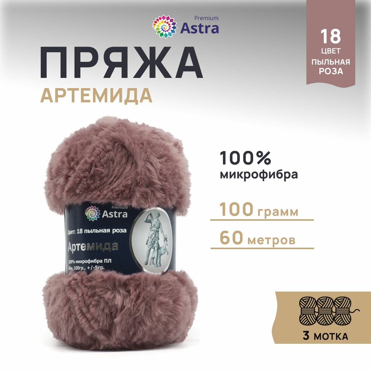 Пряжа для вязания Astra Premium 'Артемида', 100г, 60м (100% микрофибра ПЛ) (18 пыльная роза), 3 мотка информация: