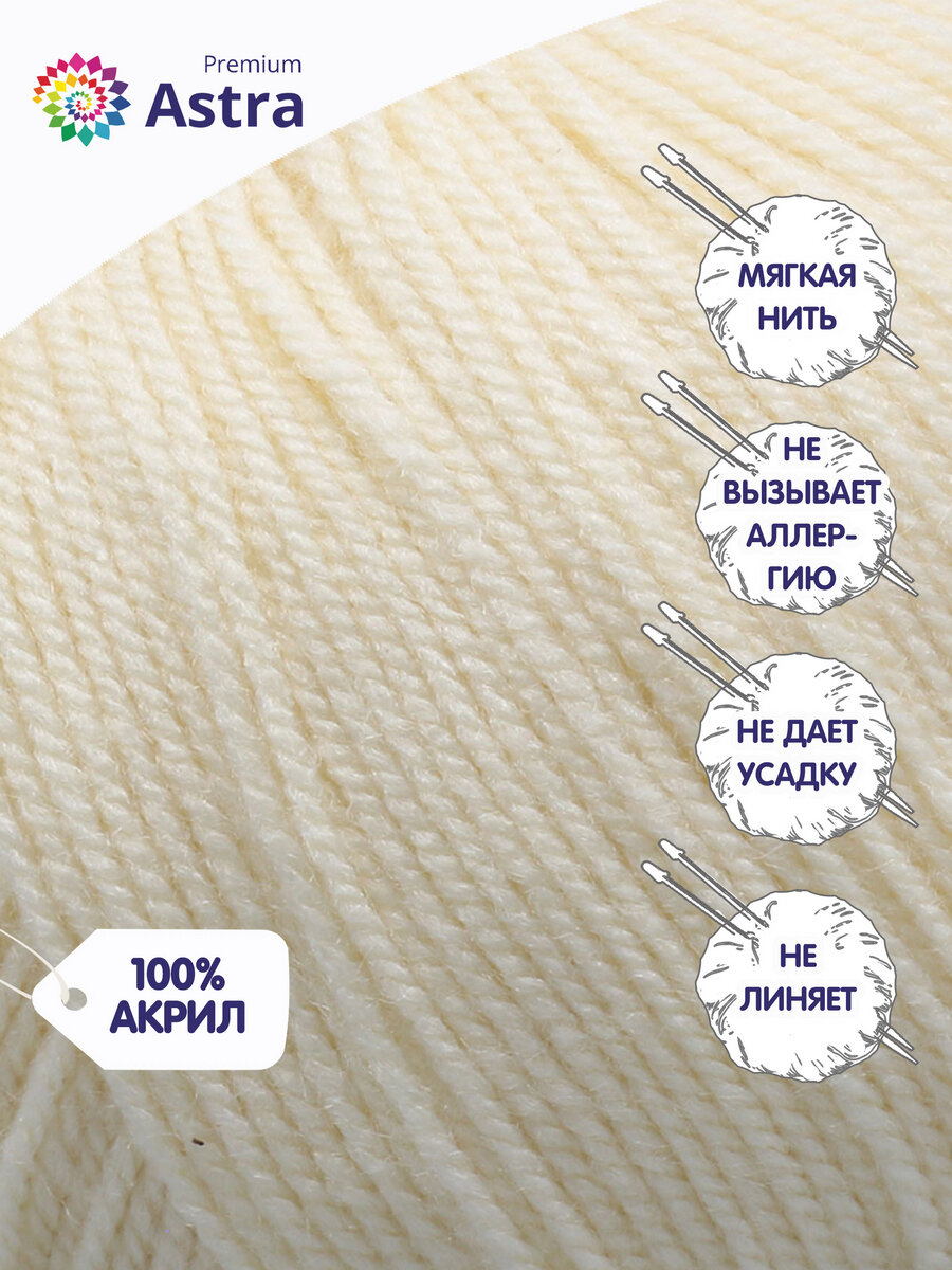 Пряжа Astra Premium 'Молочный хлопок' (Milk Cotton), 50 г, 100 м (+/-5%) (50% хлопок, 50% молочный акрил), 3 мотка