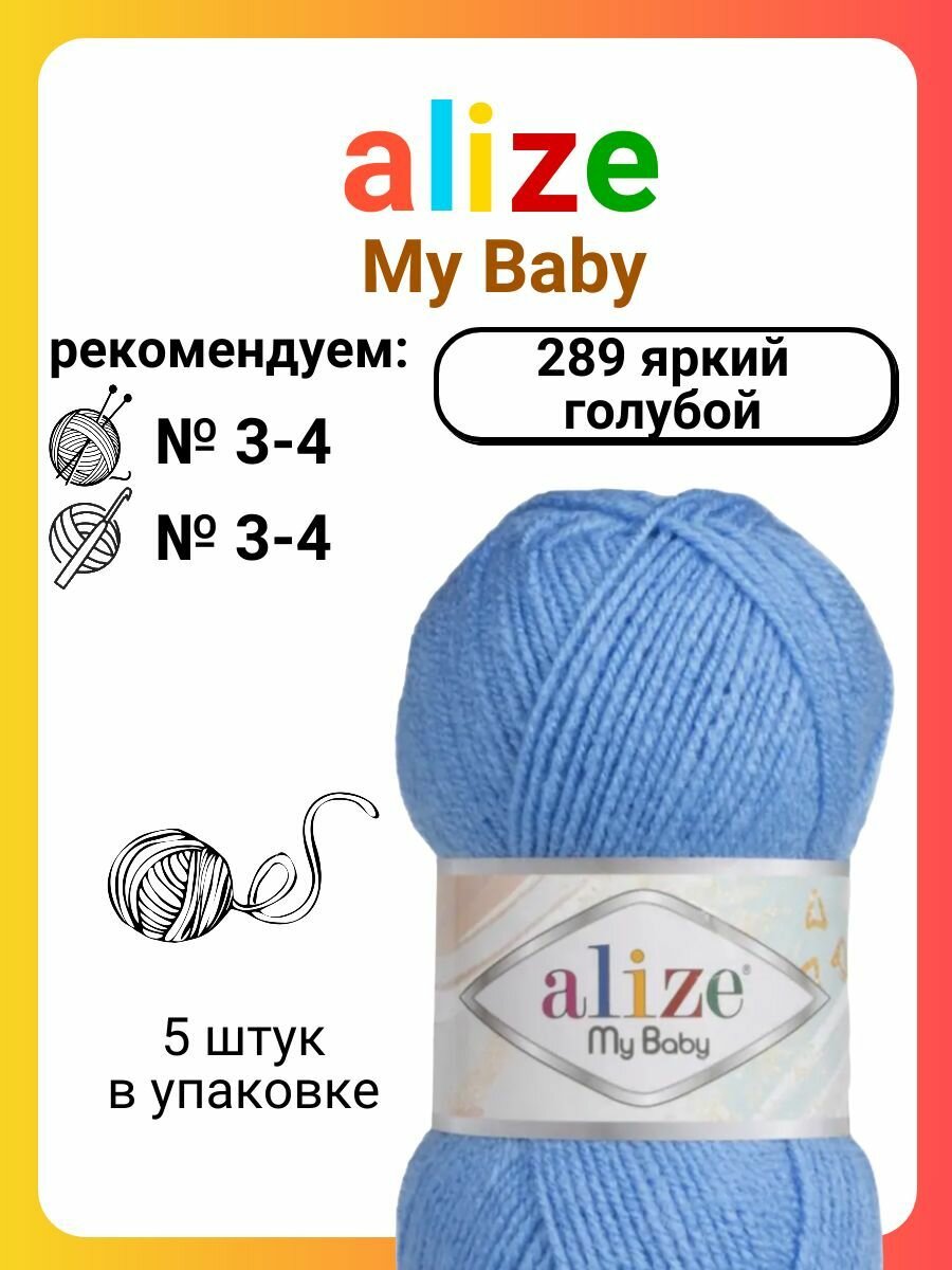 Пряжа Alize My baby темно-голубой (289), 100%акрил, 150м, 50г, 5шт информация: