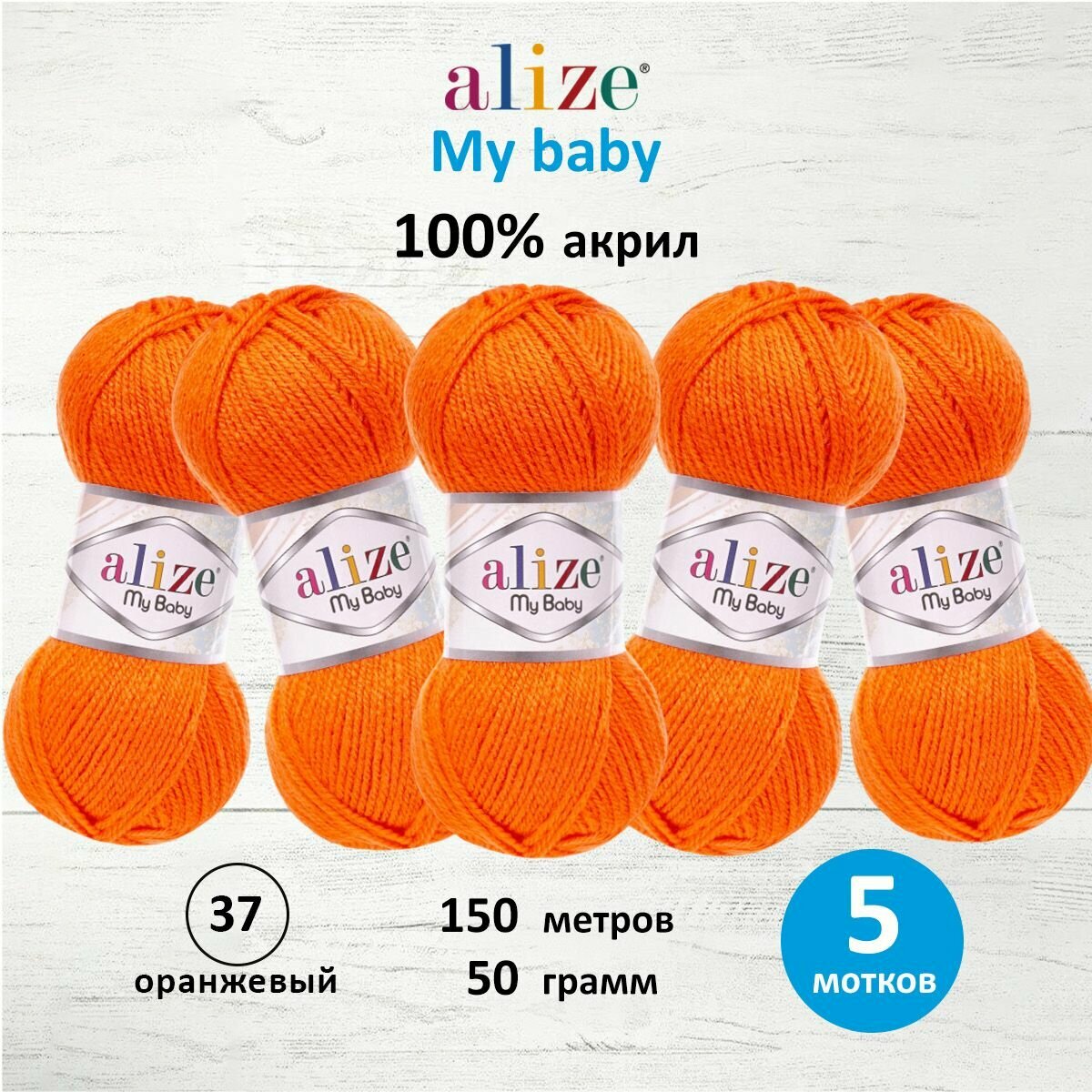 Пряжа MY BABY (Alize), оранжевый - 37, 100% акрил, 5 мотков, 50 г, 150 м. 625 ₽