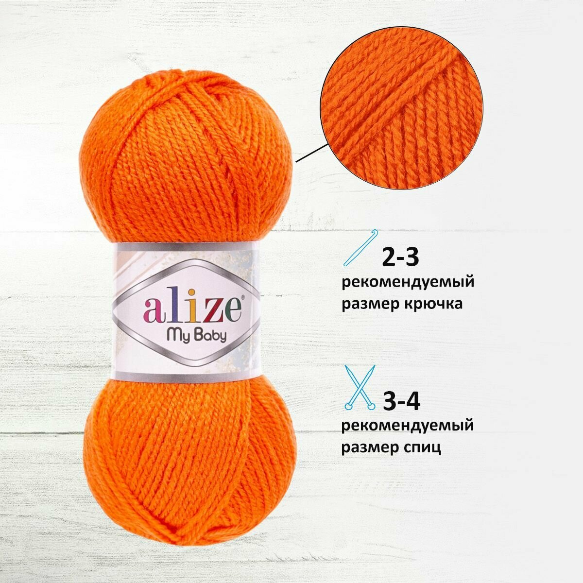 Пряжа MY BABY (Alize), оранжевый - 37, 100% акрил, 5 мотков, 50 г., 150 м. 691 ₽