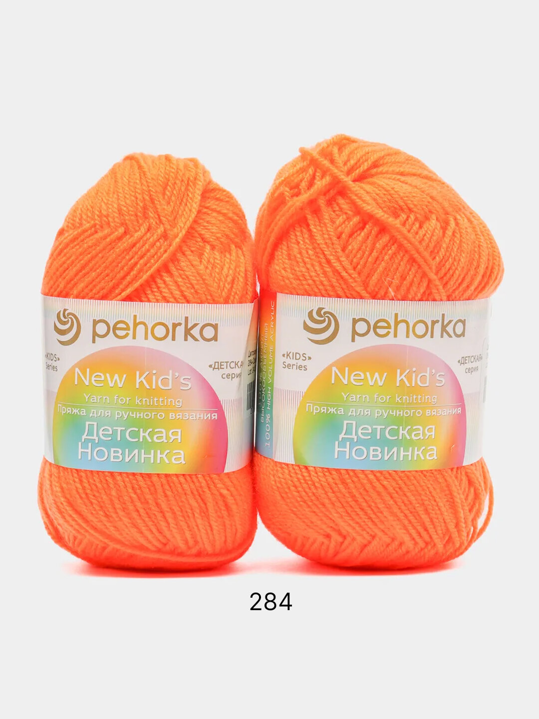 Пряжа для вязания Пехорка Детская новинка, комплект: 2 шт., цвет: оранжевый (284), состав: 100% акрил, вес: 50 г, длина: 200 м информация: