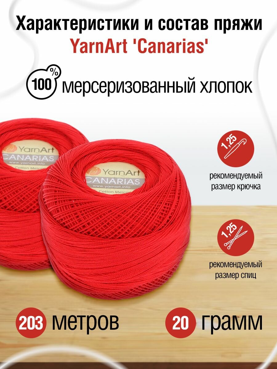 Пряжа для вязания YarnArt 'Canarias', 20г, 203м (100% мерсеризированный хлопок) (6328 красный), 10 мотков информация: