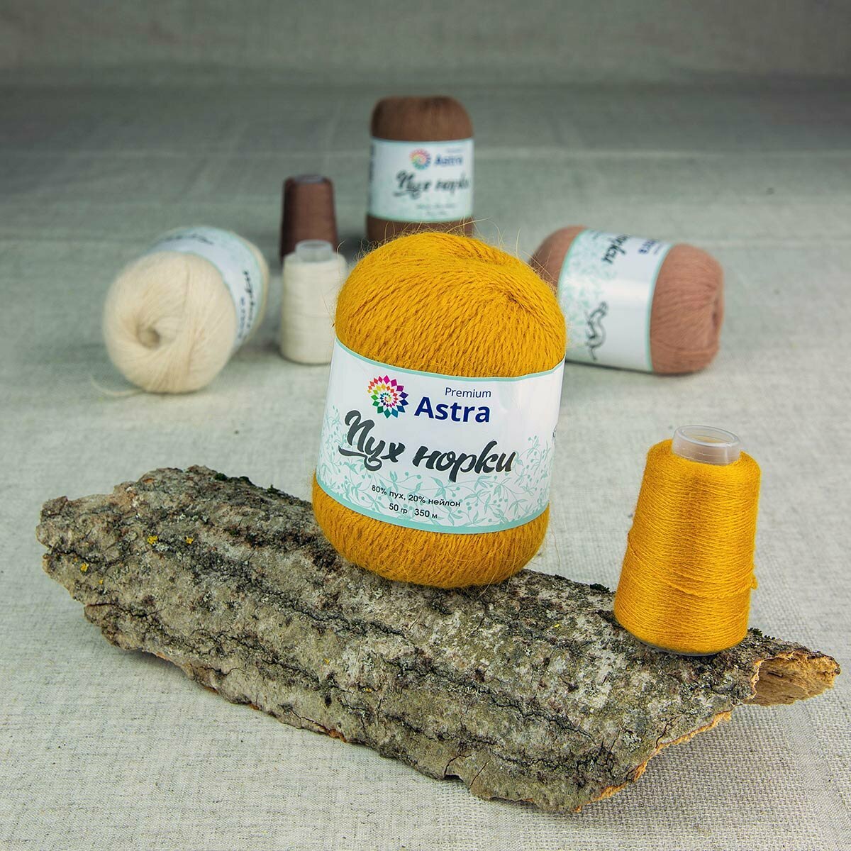 Пряжа для вязания Astra Premium 'Пух норки' (Mink yarn), 50г, 290м (80% пух, 20% нейлон) + нить 20г (036 горчичный)