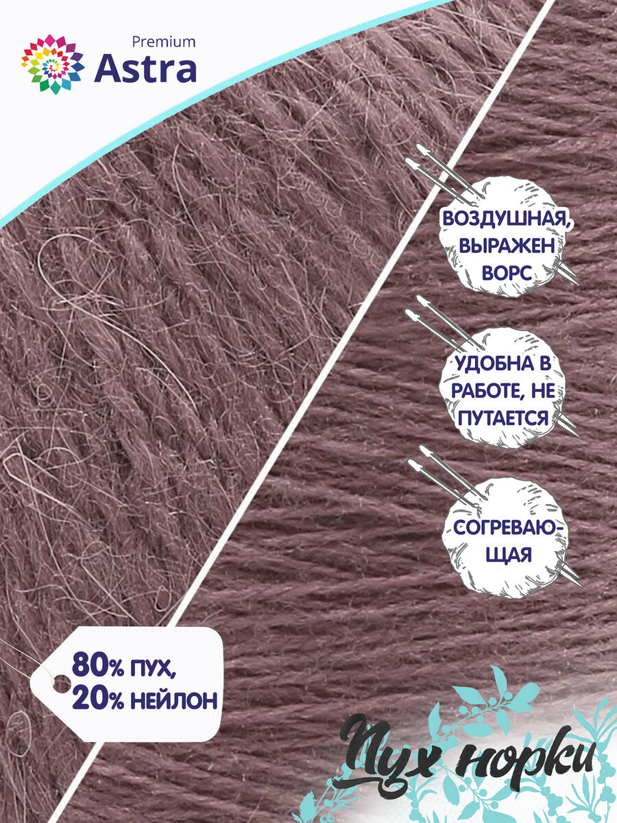 10 цен на Пряжа для вязания Astra Premium 'Пух норки' (Mink yarn), 50г, 290м (+- 5%) (80% пух, 20% нейлон) (+ нить 20 г) (063 пыльный кедр)