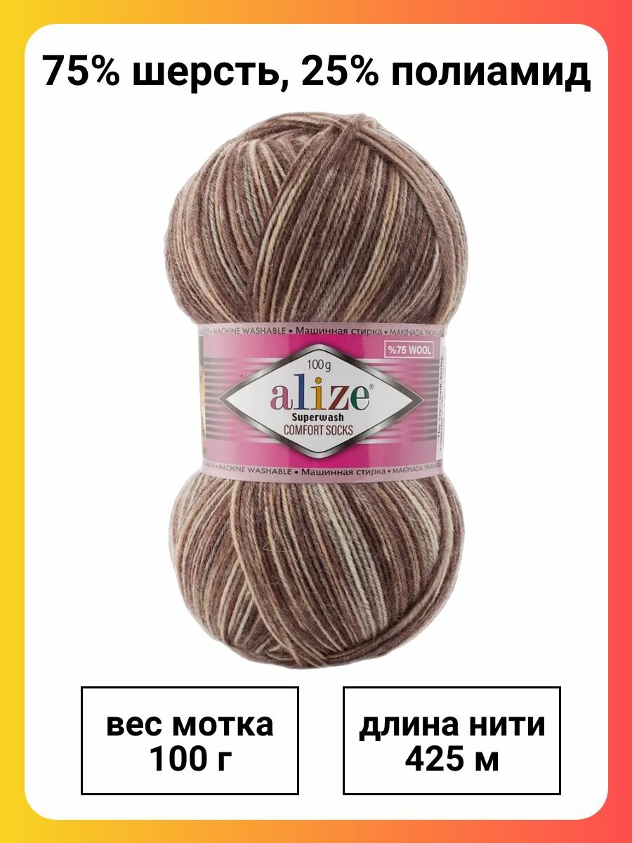 10 цен на Пряжа Alize Superwash comfort socks коричнево-бежевый (7678), 75%шерсть/25%полиамид, 420м, 100г, 5шт