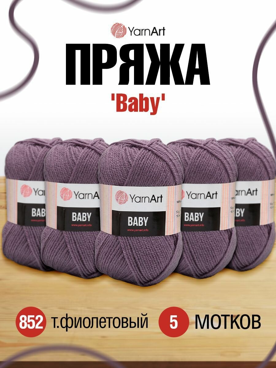 Пряжа для вязания YarnArt 'Baby' 50г, 150м (100% акрил) (852 темно-фиолетовый), 5 мотков информация: