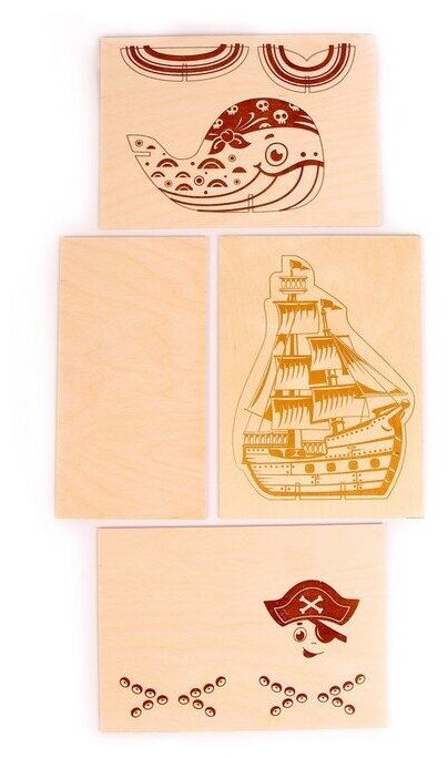 4шт Заготовки деревянные для выжигания "Сказочные мотивы",