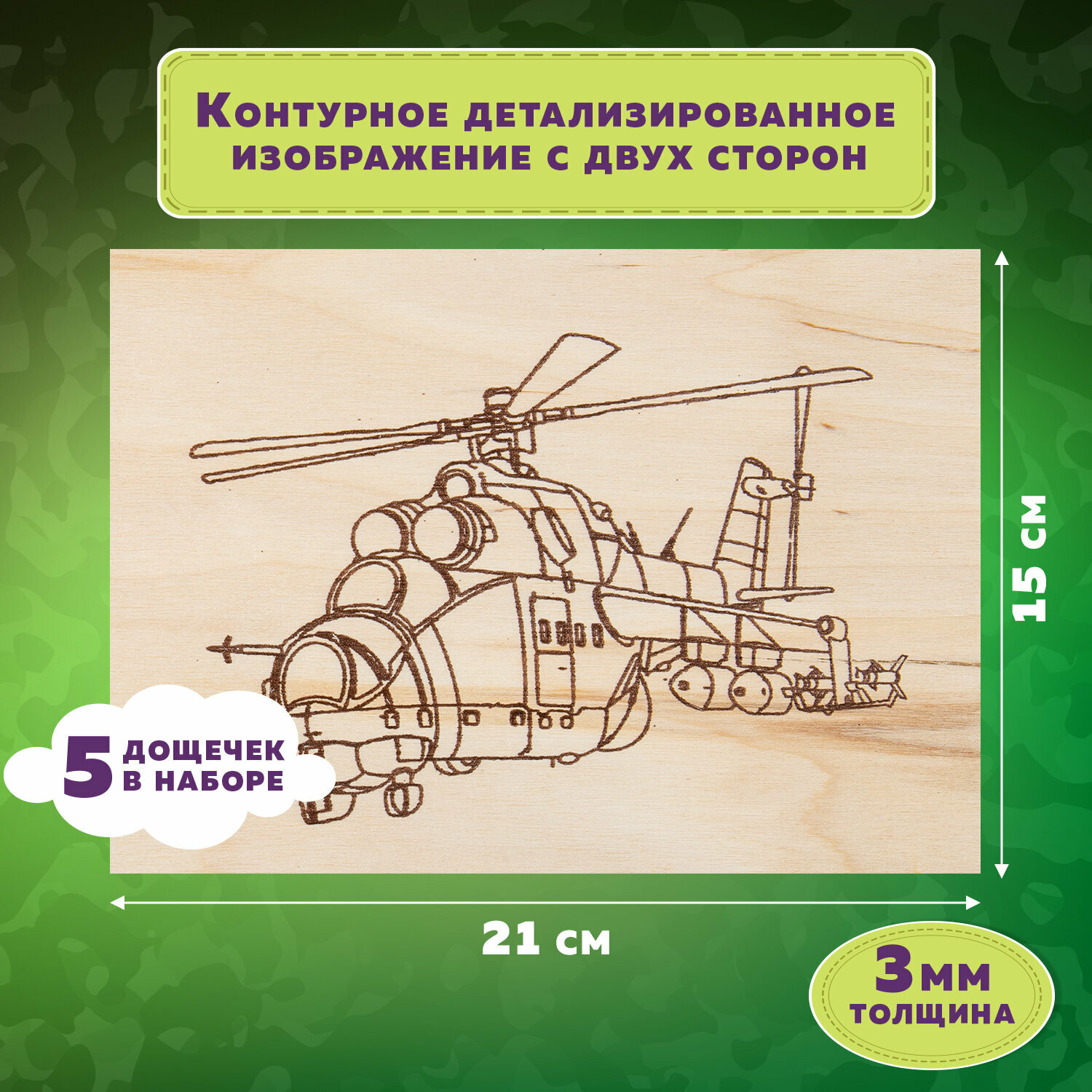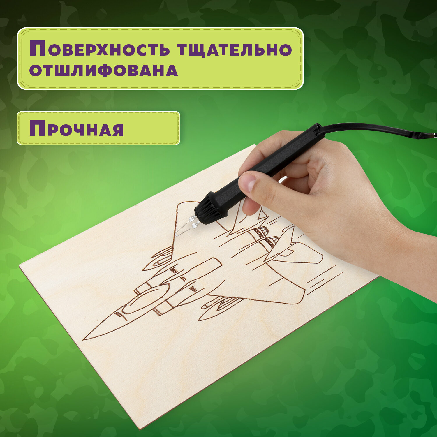 Набор для выжигания по дереву, деревянные заготовки для творчества Военная техника, 5 штук 10 рисунков, 15x21 см, Brauberg Hobby, 665308 информация: