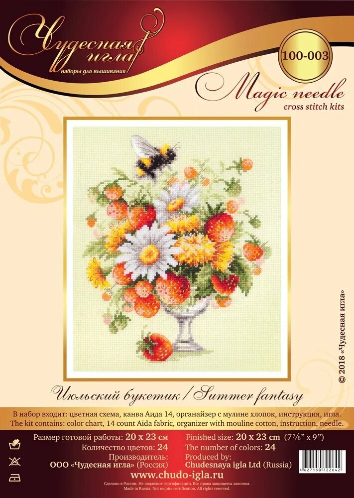 Набор для вышивания Чудесная Игла 100-003 "Июльский букетик" 20 x 23 см информация: