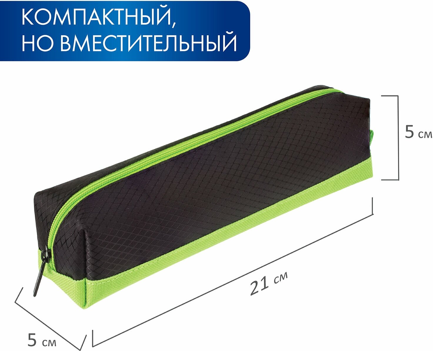 Пенал-косметичка школьный для ручек, карандашей для мальчика/девочки/подростка Brauberg, мягкий, Black&Bright, черно-зеленый, 21х5х5 см, 229005 информация: