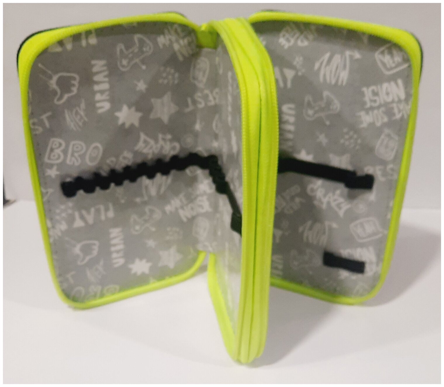 Пенал без наполнения Оникс ПКТ 11-42 Черный-ярко-салатовый на 2 молниях