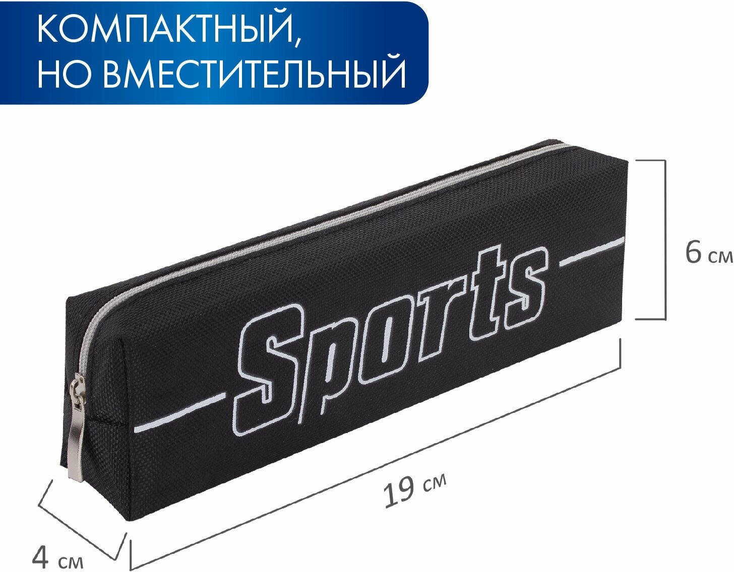 Пенал BRAUBERG, 1 отделение, полиэстер, Sport, черный, 19х4х6 см, 270267 информация: