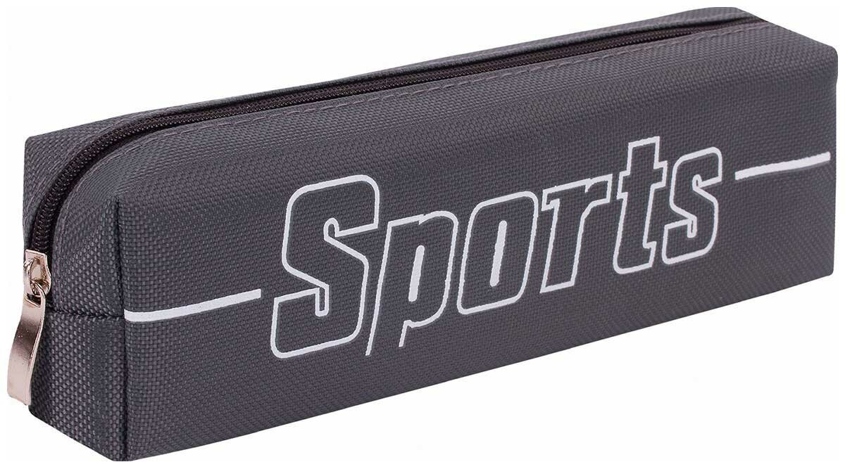 Пенал BRAUBERG, 1 отделение, полиэстер, Sport, серый, 19х4х6 см, 270268