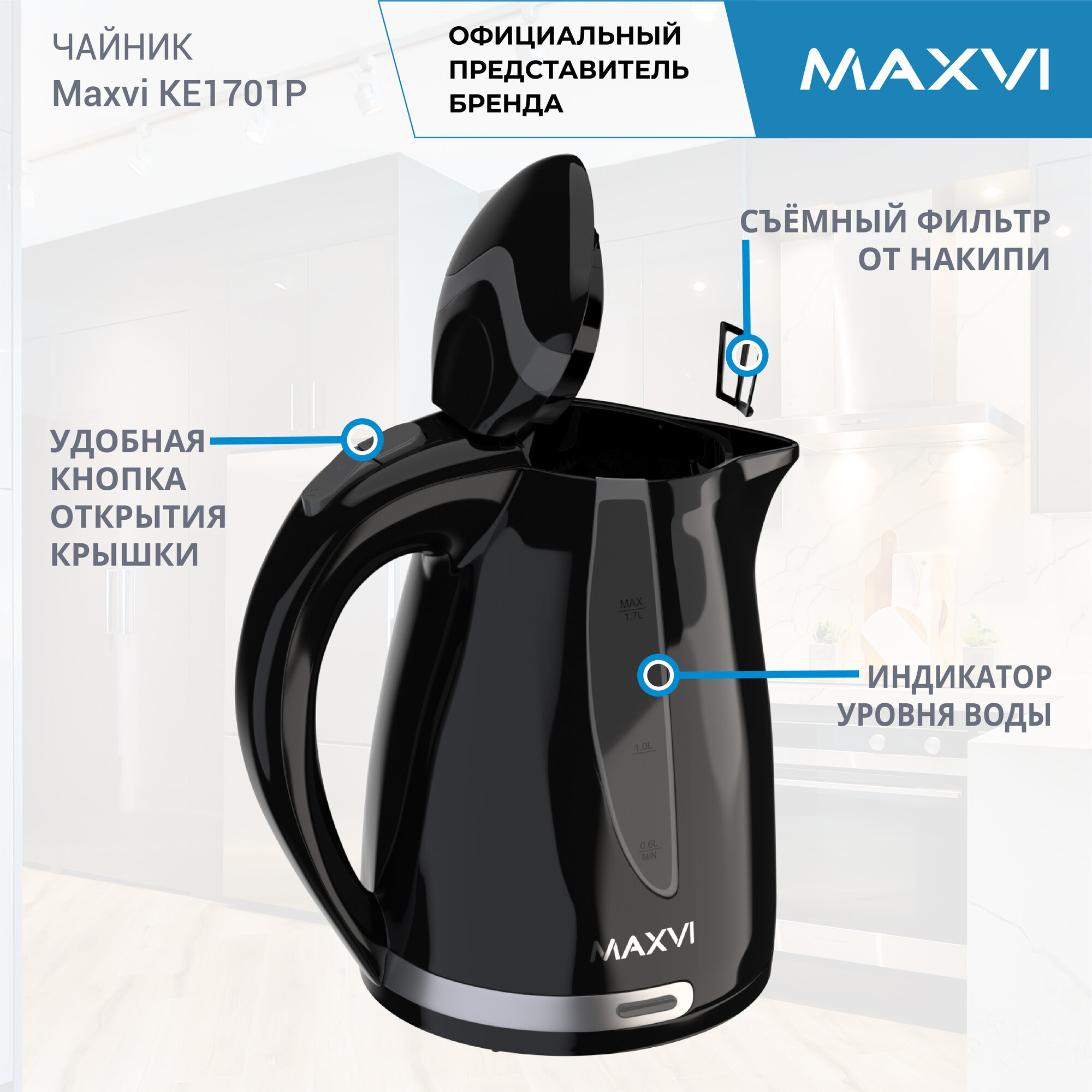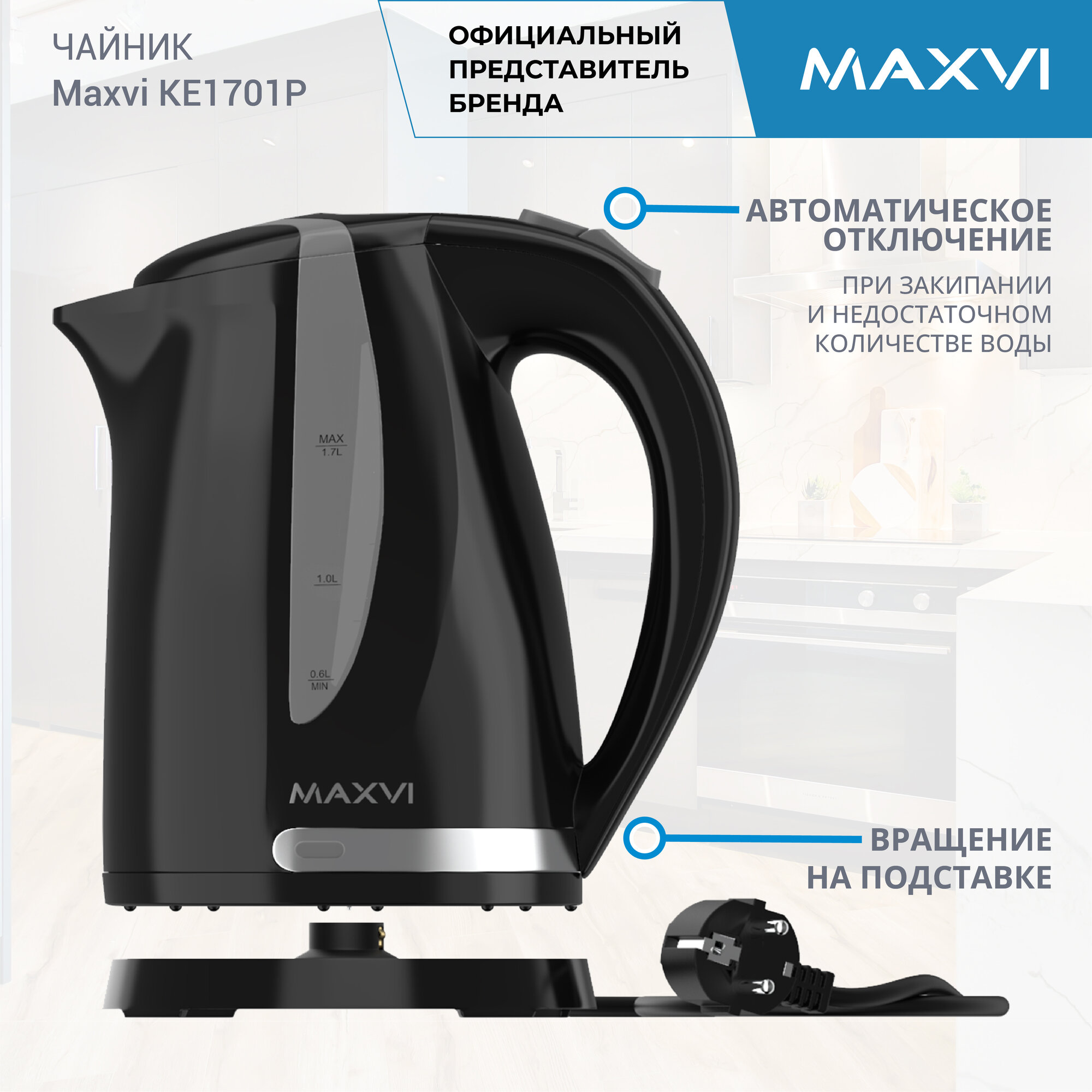 Электрический чайник MAXVI KE1701P, 1,7 литра, 2200 Вт, черный 1 204 ₽