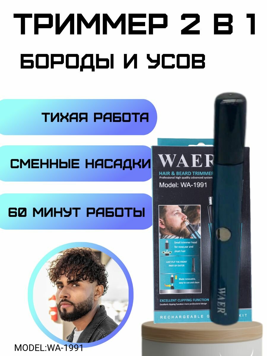 Триммер 2 в1 WAER WA-1991 для волос, бороды, ушей и носа. Перезаряжаемый набор для бритья информация: