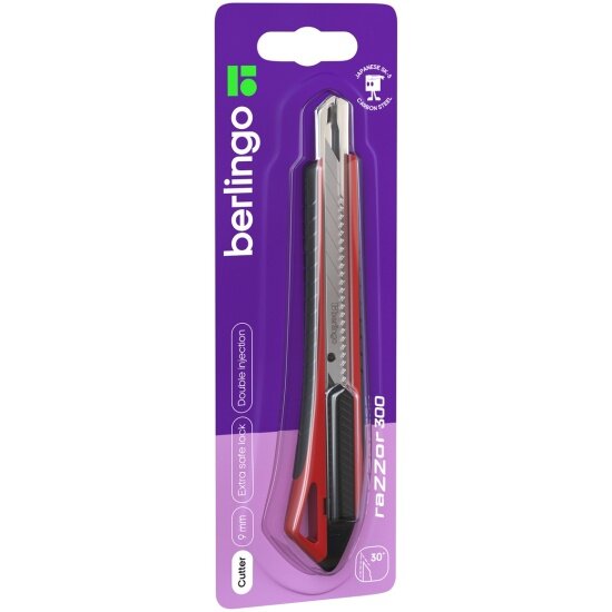 Нож канцелярский Berlingo 9 мм, "Razzor 300", auto-lock, мягкие вставки, красный (BM4131_a) информация:
