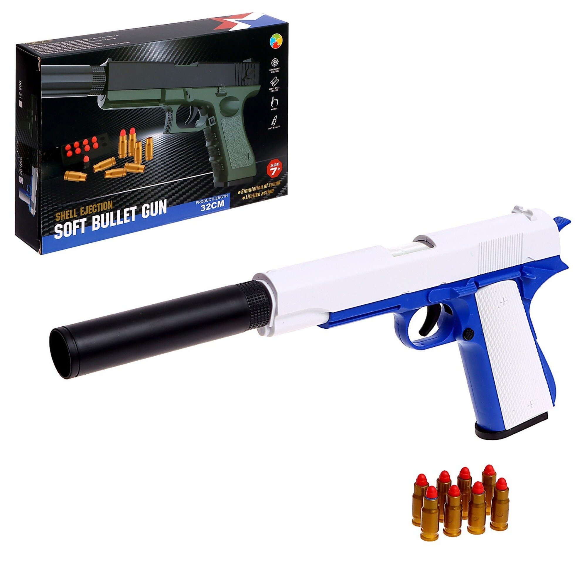 10 цен на Пистолет "Кольт", с гильзами, глушителем, стреляет мягкими пулями, для детей от 7 лет
