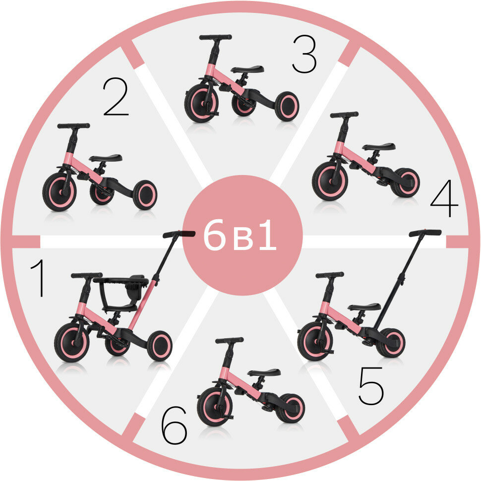 Отзывы на Детский беговел-велосипед 6в1 с родительской ручкой, розовый - TR008-PINK