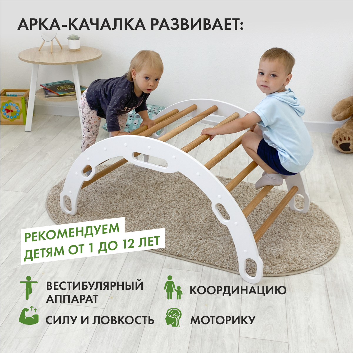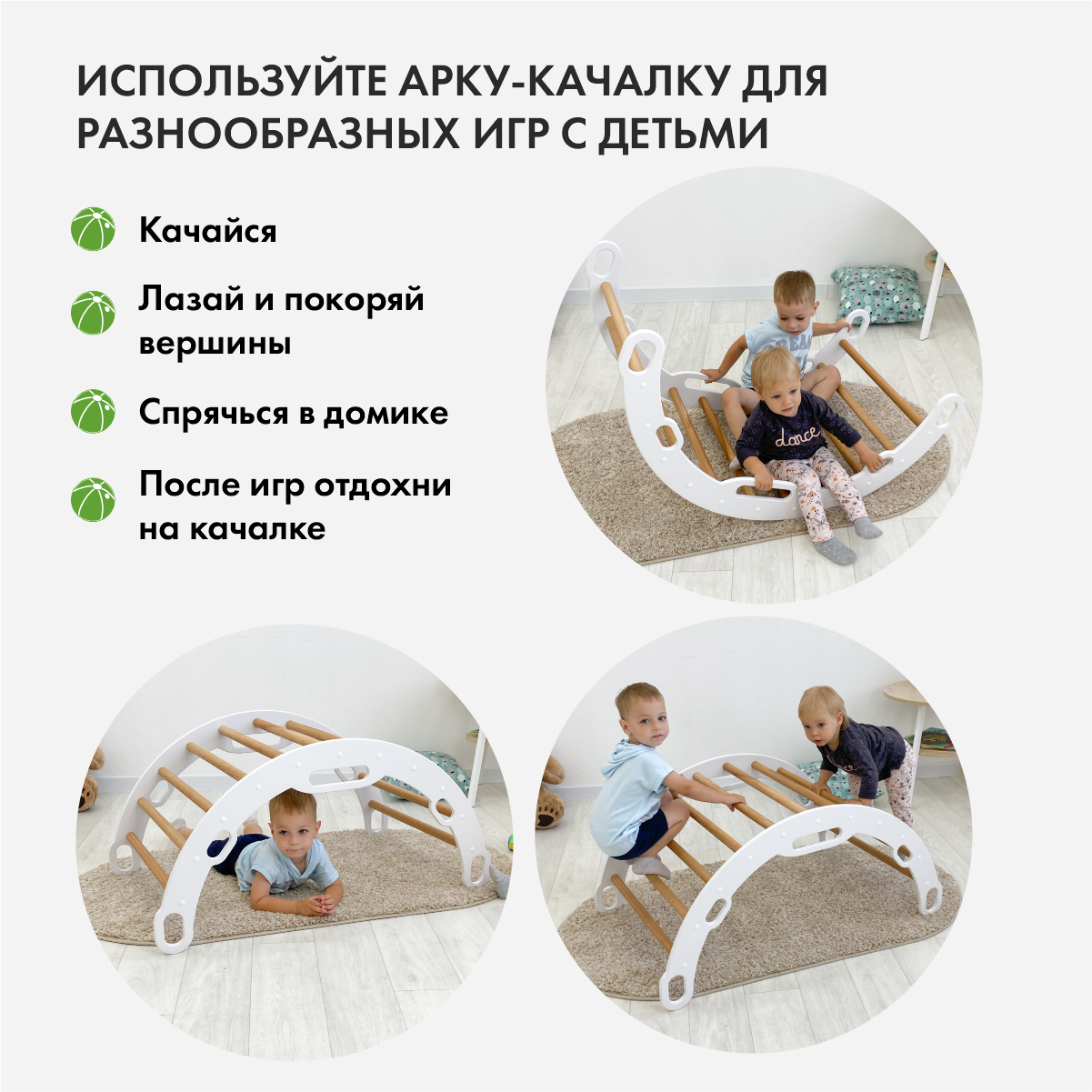 10 цен на Детская арка качалка Пиклер, прозрачное масло и белый акрил