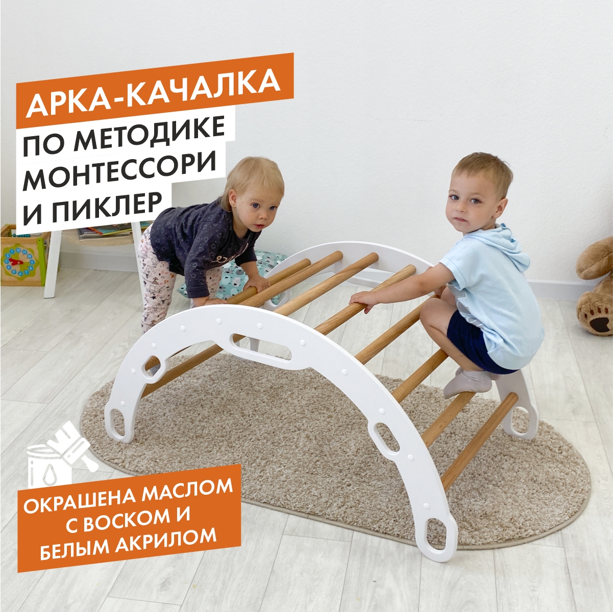 Детская арка качалка Пиклер, прозрачное масло и белый акрил информация: