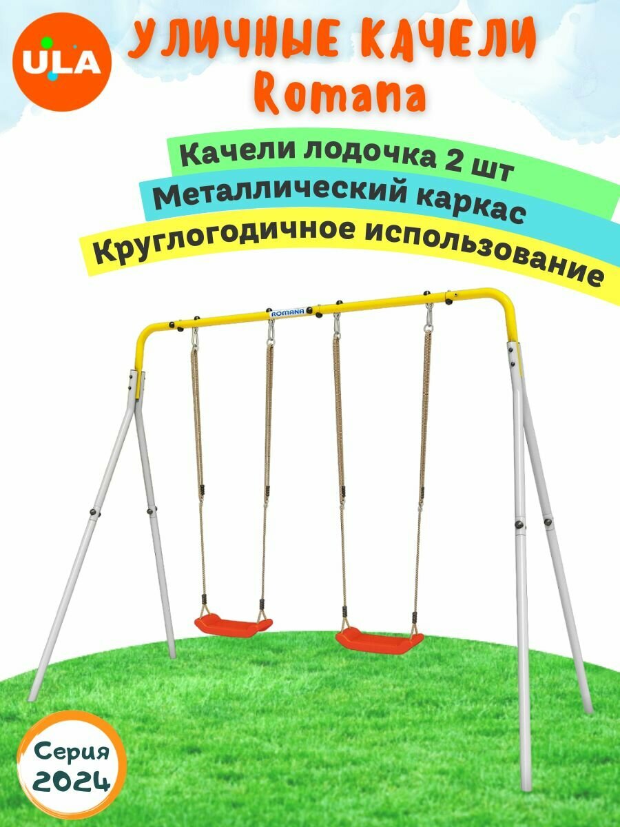 10 цен на Уличные качели детские ROMANA с 2 пластиковыми качелями лодочка