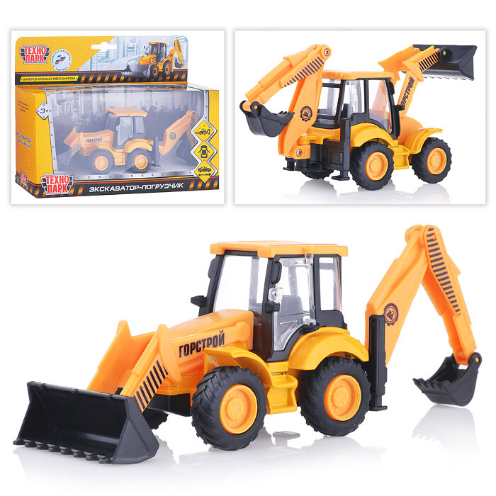 10 цен на Технопарк Машина Экскаватор-погрузчик 15 см, металл 258213 с 3 лет