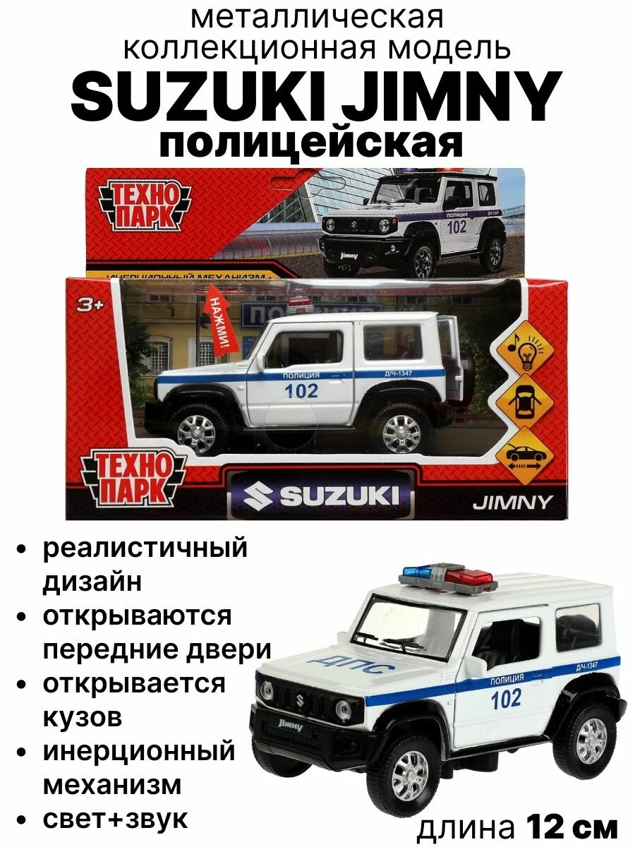 Отзывы на Машина металл свет-звук Сузуки Джимни Полиция, 11,5 см. Технопарк JIMNY-12SLPOL-WH