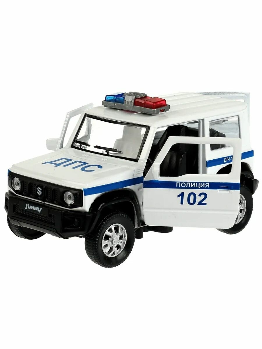 Машинка детская Полиция Suzuki Jimny 11.5 см, Технопарк, белая, открываются двери и багажник, металлический корпус