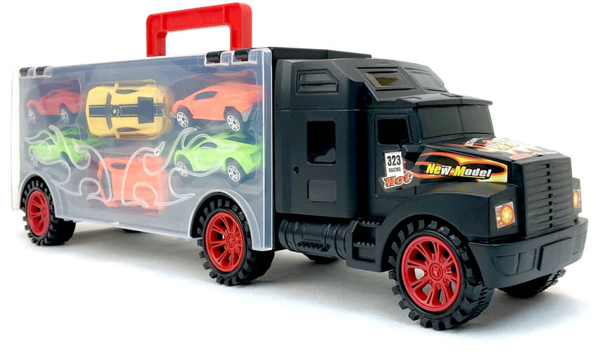 Трейлер с машинками, автовоз с набором металлических машинок, кейс с ручкой, 40х12х9 см