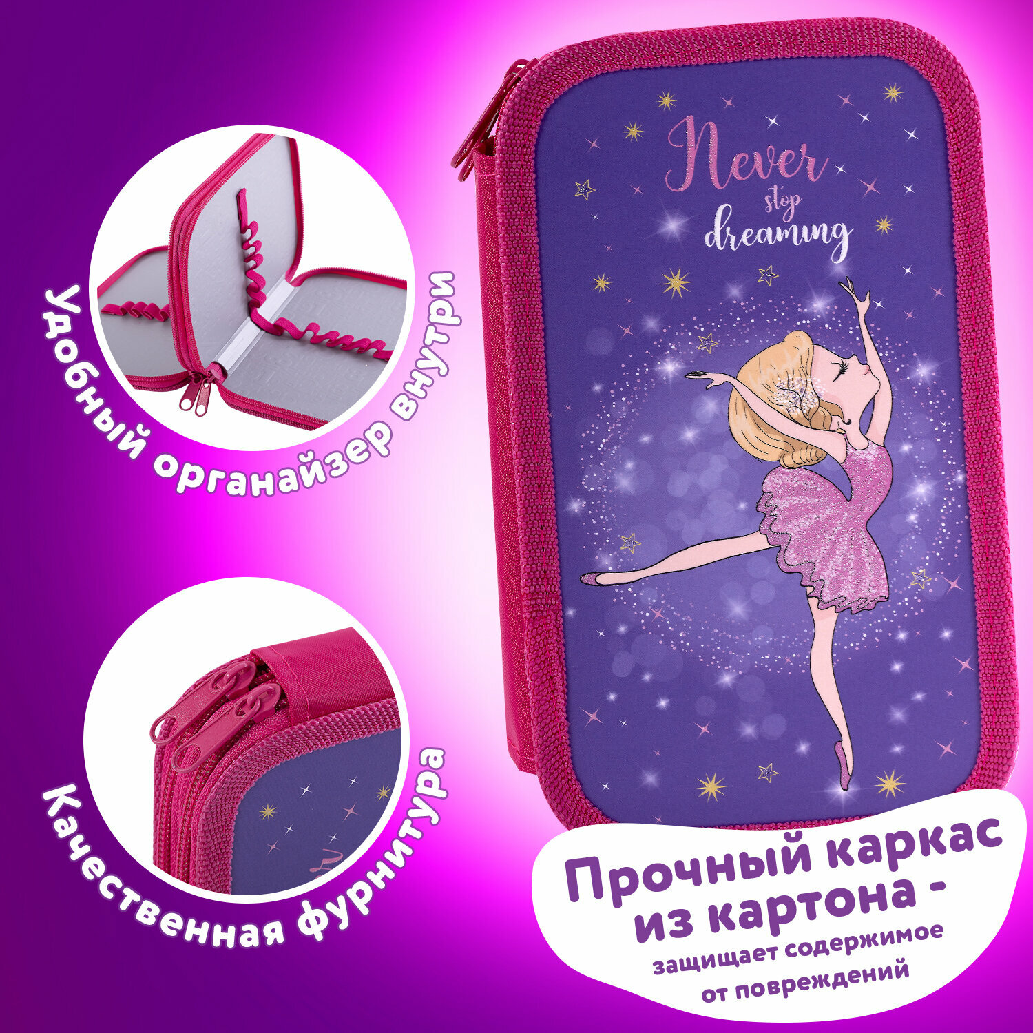 Отзывы на Пенал Юнландия, 2 отделения, ламинированный картон, блестки, 19х11 см, Dancing girl, 270885