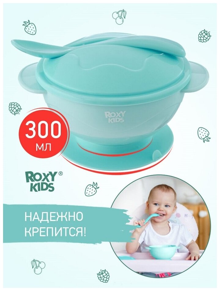 Отзывы на Набор для кормления Roxy-Kids, тарелка на присоске, крышка и ложка, голубой