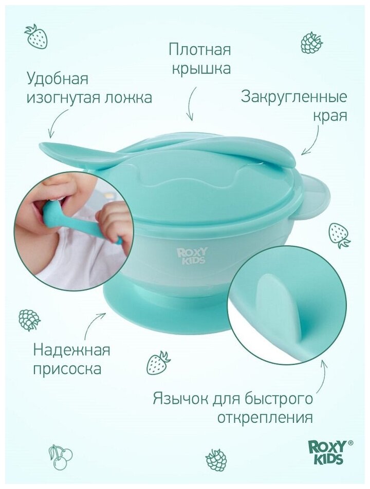 10 цен на Набор для кормления Roxy-Kids, тарелка на присоске, крышка и ложка, голубой