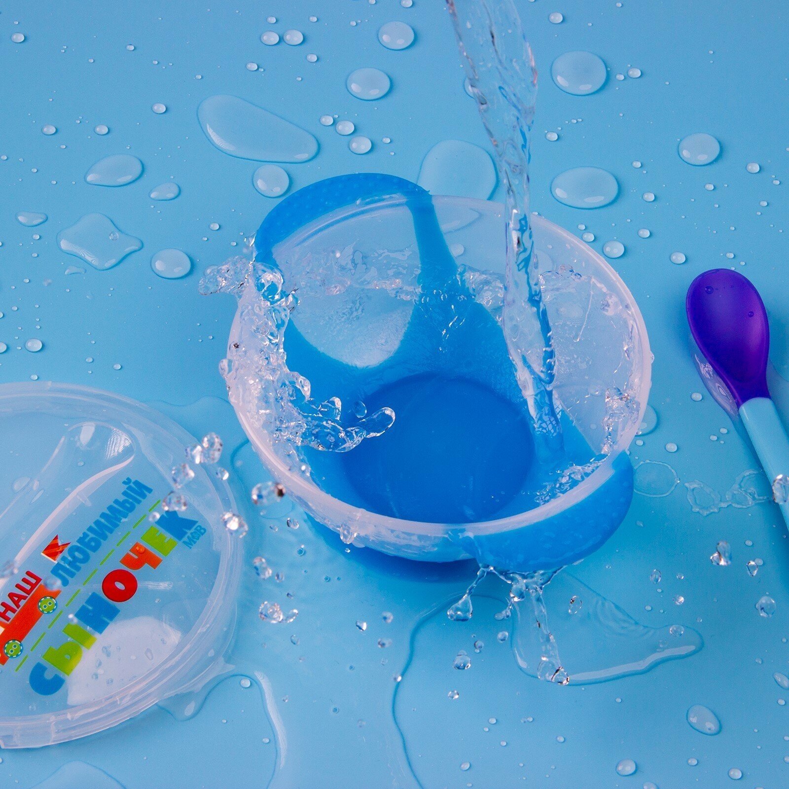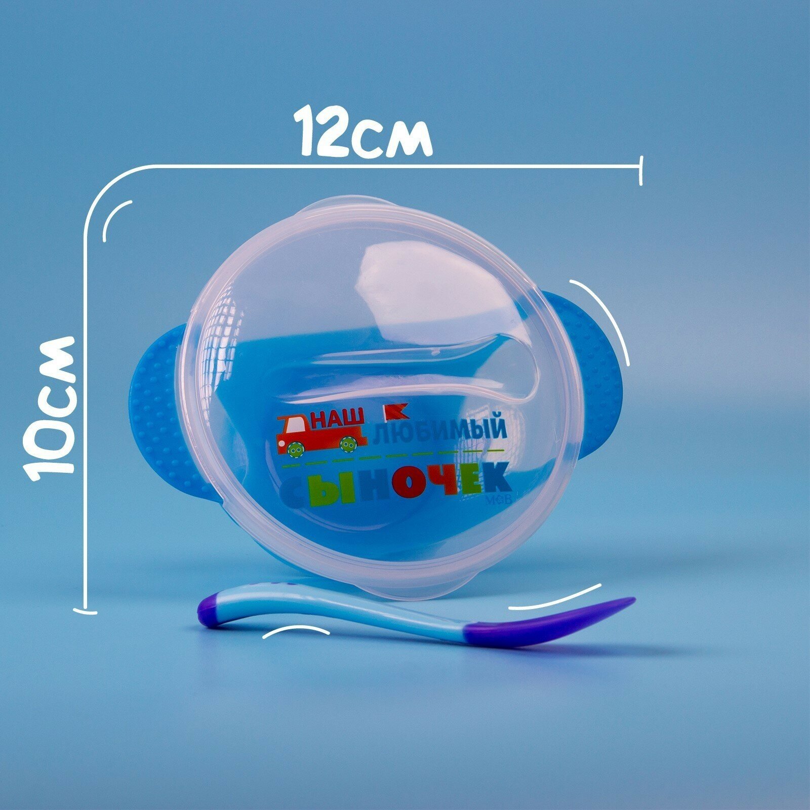Набор детской посуды на присоске «Наш любимый сыночек» с ложкой и крышкой информация:
