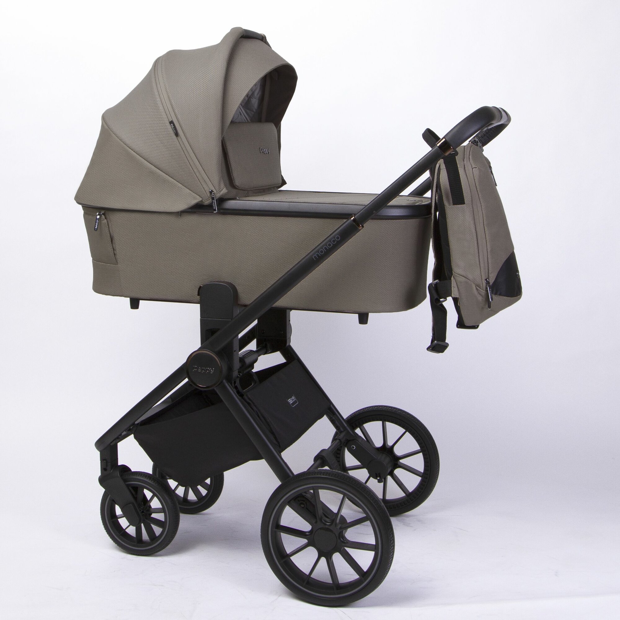 Коляска детская Peppy Monaco 2 в 1 Sandstone (песочный), рама черная информация: