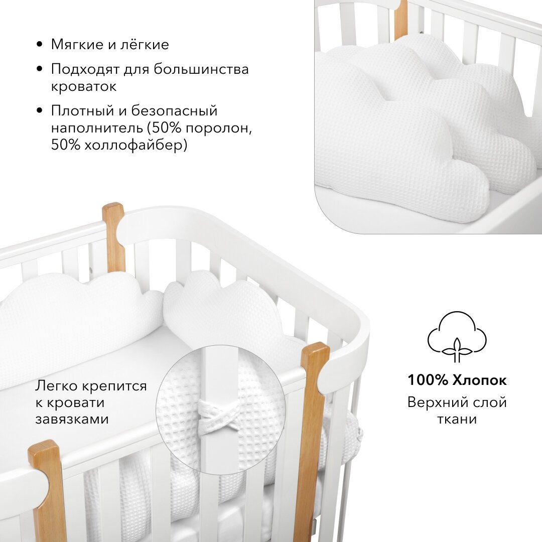 Отзывы на 87507, Бортики в кроватку для новорожденных Happy Baby, бортик для кровати от падения, набор 3шт облака, хлопковые, белоснежные
