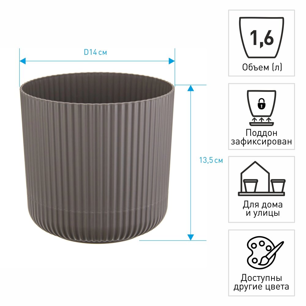 Кашпо Вельвет d140мм 1,6л с пристегнутым поддоном, французский серый информация: