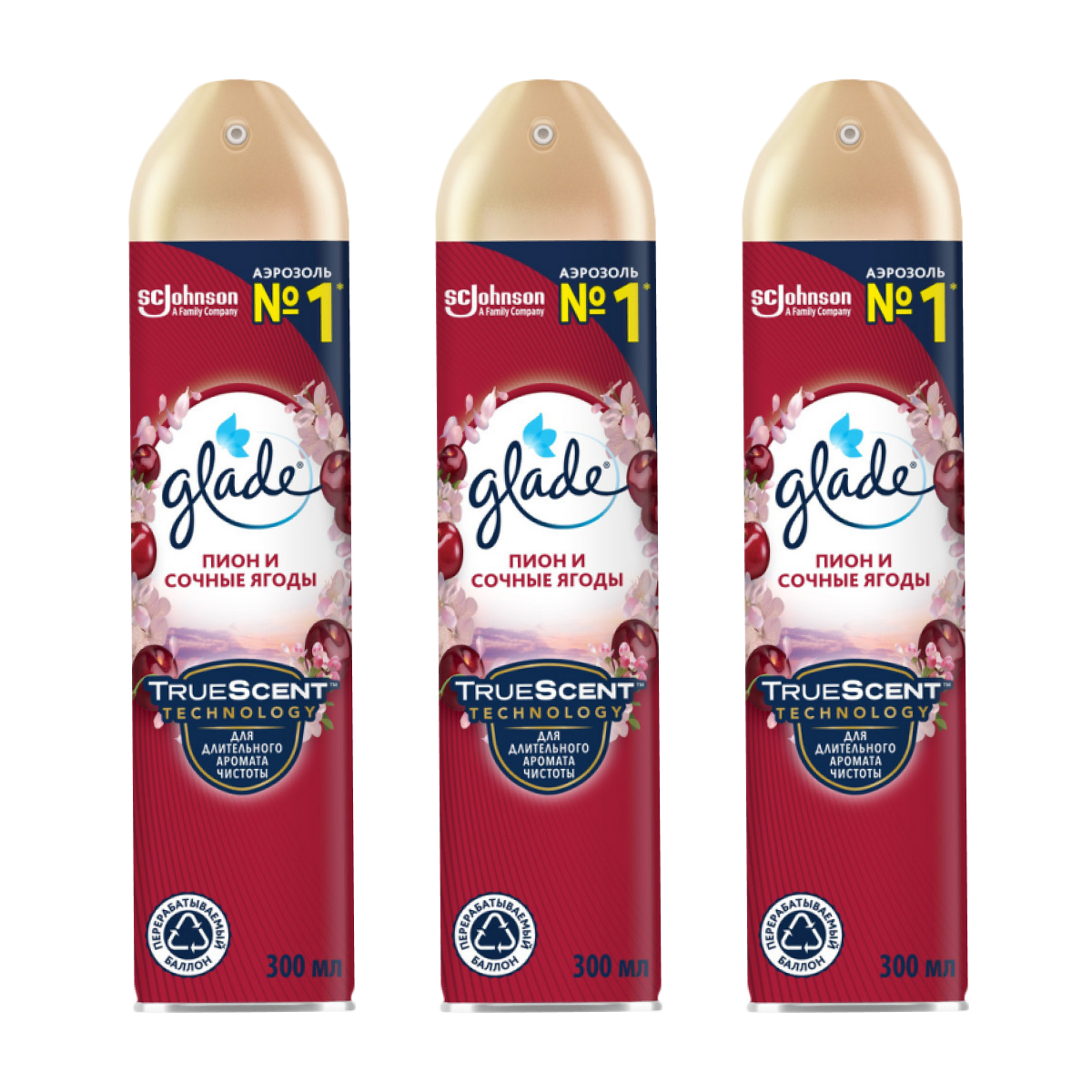 Освежитель воздуха аэрозольный 300 мл GLADE "Пион и сочные ягоды", 3 шт 1 112 ₽